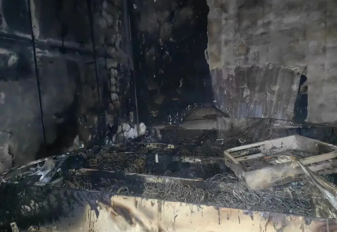 火災造成起火住戶臥室內床鋪等家具燒損