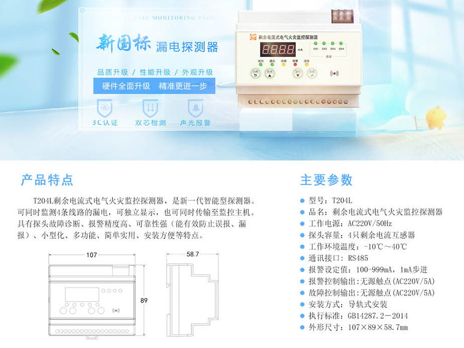 電氣火災監控系統 | 智能疏散指示系統 | 漏電探測器 | 剩余電流探測器 | e火控系列 | DT-200 T201LW T204L T204W J80 | 航天常興  網站地圖