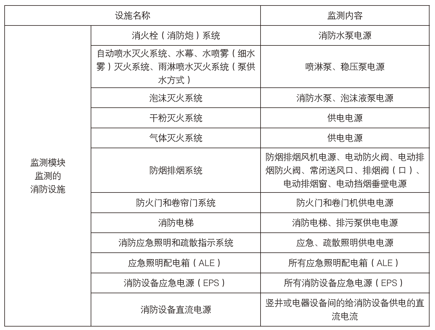 ●通常消防負荷及監(jiān)測模塊具體設置場所和監(jiān)測內容如下圖所示: